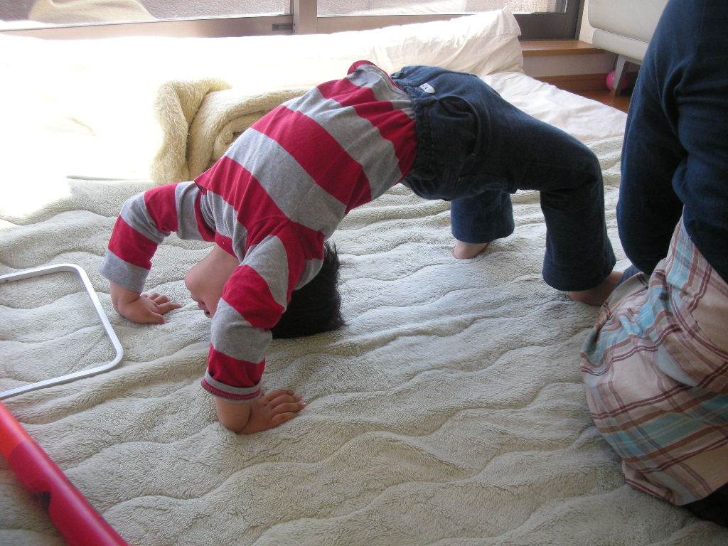 体操教室の成果か?知らない間になっくん坊が見事なブリッジを修得してビックリしました。