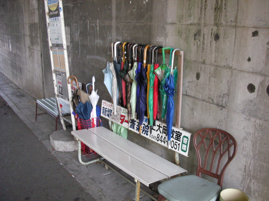 通りかかったバス停に傘が置いてありました。(しかも大量に。。。)