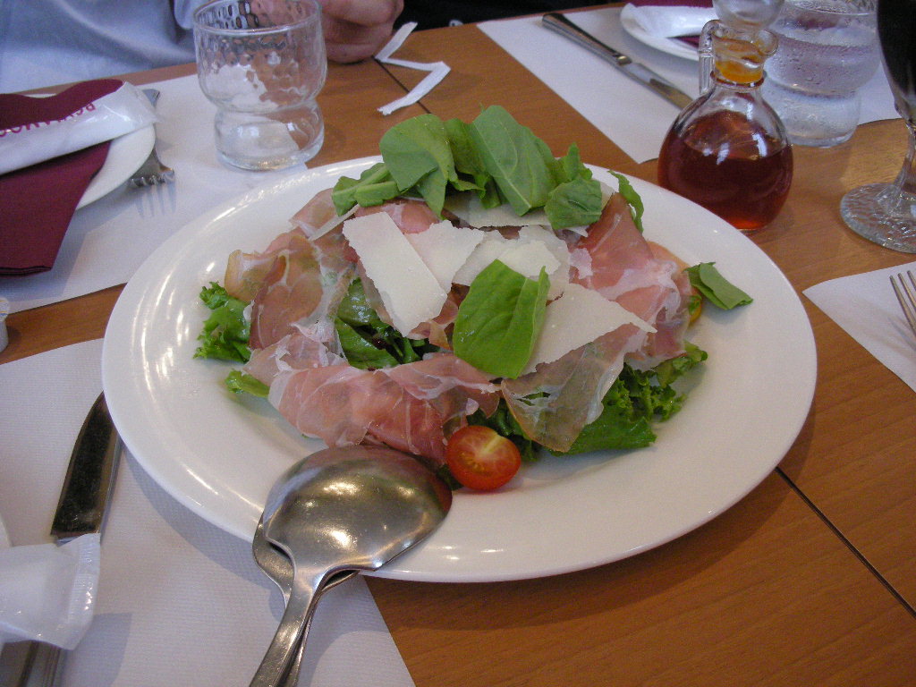 生ハムとルッコラとチーズをたっぷり使ったサラダ