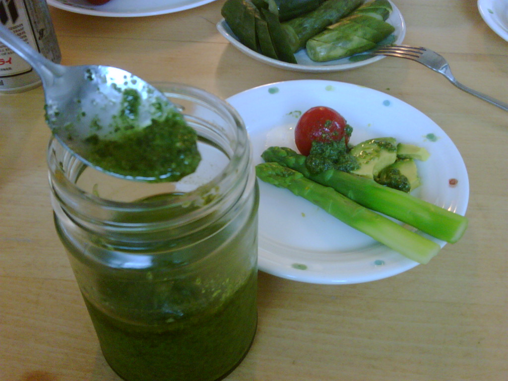 このジェノバソース、野菜を付けて旨し、魚介類のソースにバッチリ、パスタにあえて感動!