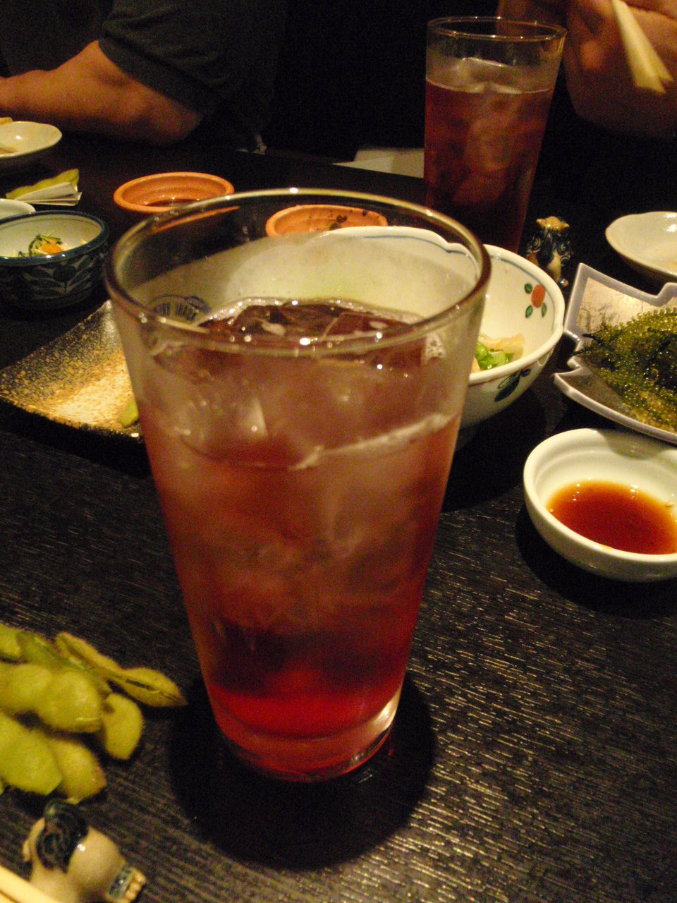 赤ワイン、麦焼酎、サイダー。を 1 : 1 : 1 で割ったもので、お好み焼き屋さんでよく飲まれるそうです。