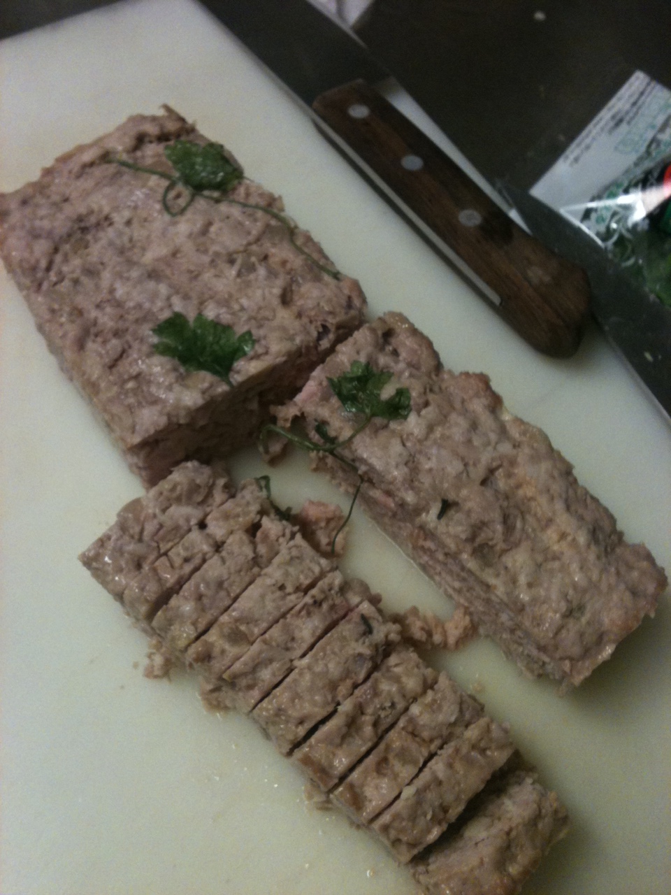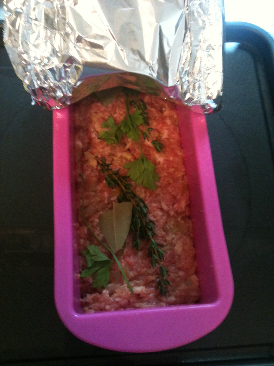今回は豚こま肉をたたいてからオーブンで蒸し焼きにするテリーヌを作りました。