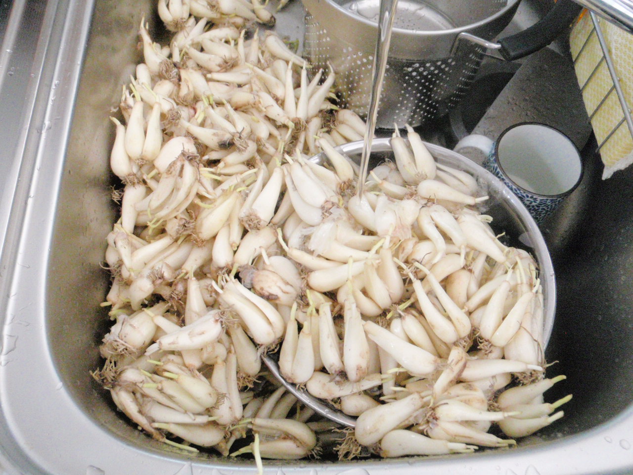 張り切ってらっきょうを4キロ買ったため、泥を落とし薄皮を取るのが骨でした。