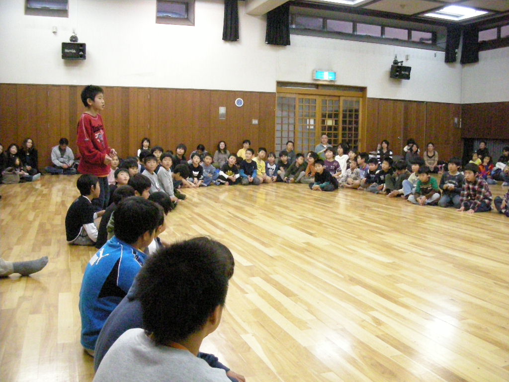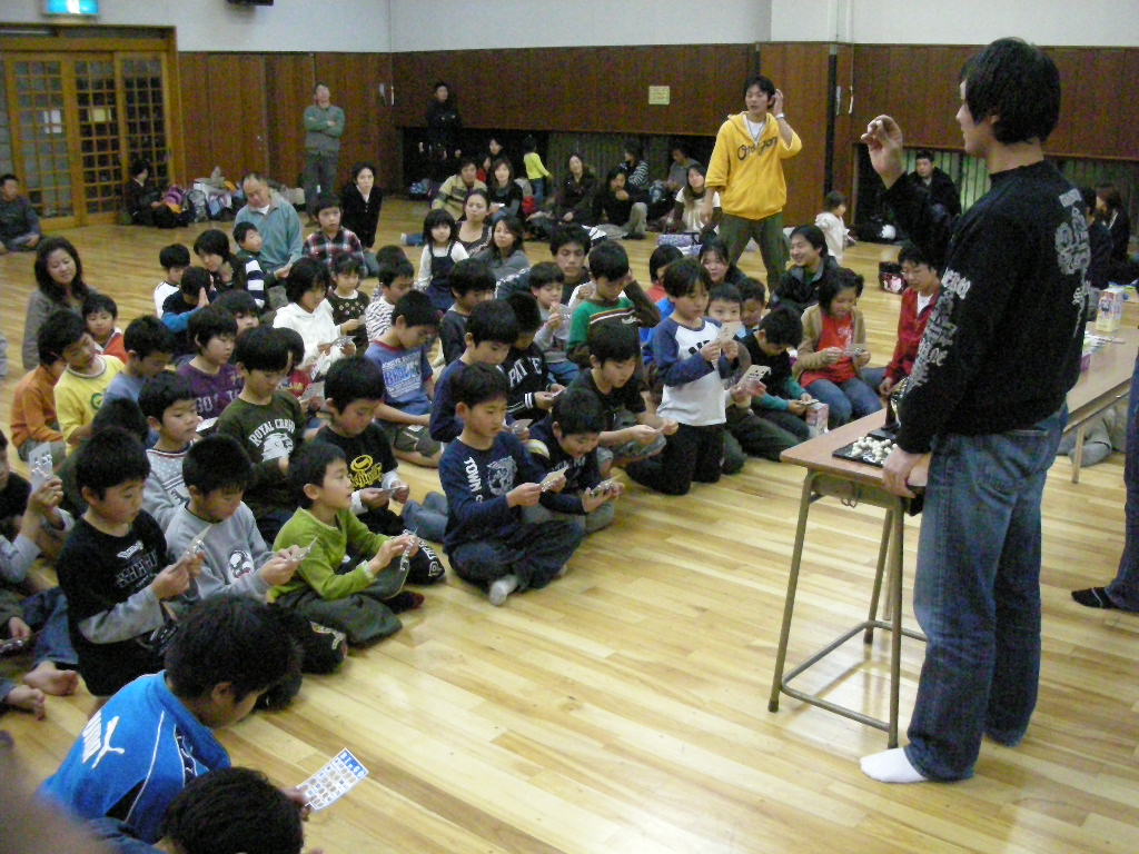 元々は大きな馬てい形で座っていた少年部たちもビンゴの数字が次々と読み上げられるに従っていつの間にかジワジワと前に進出して来てしまいます。