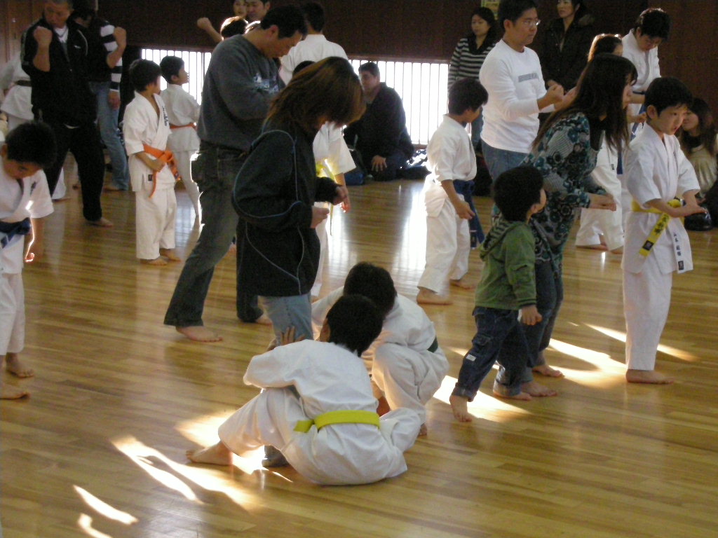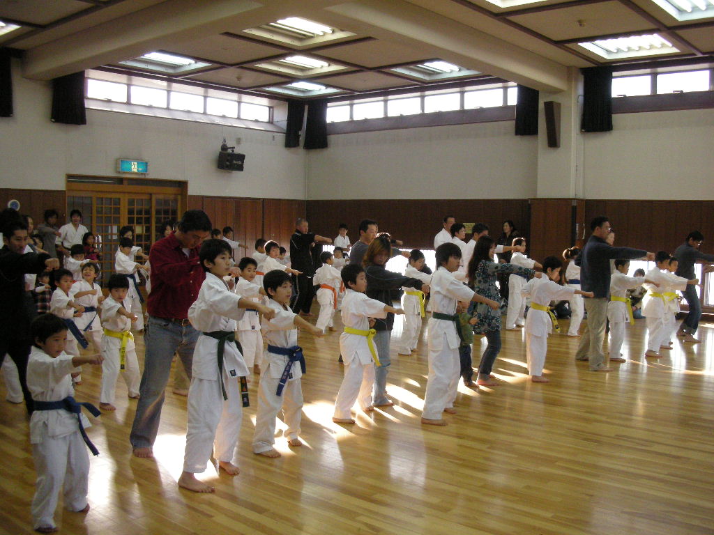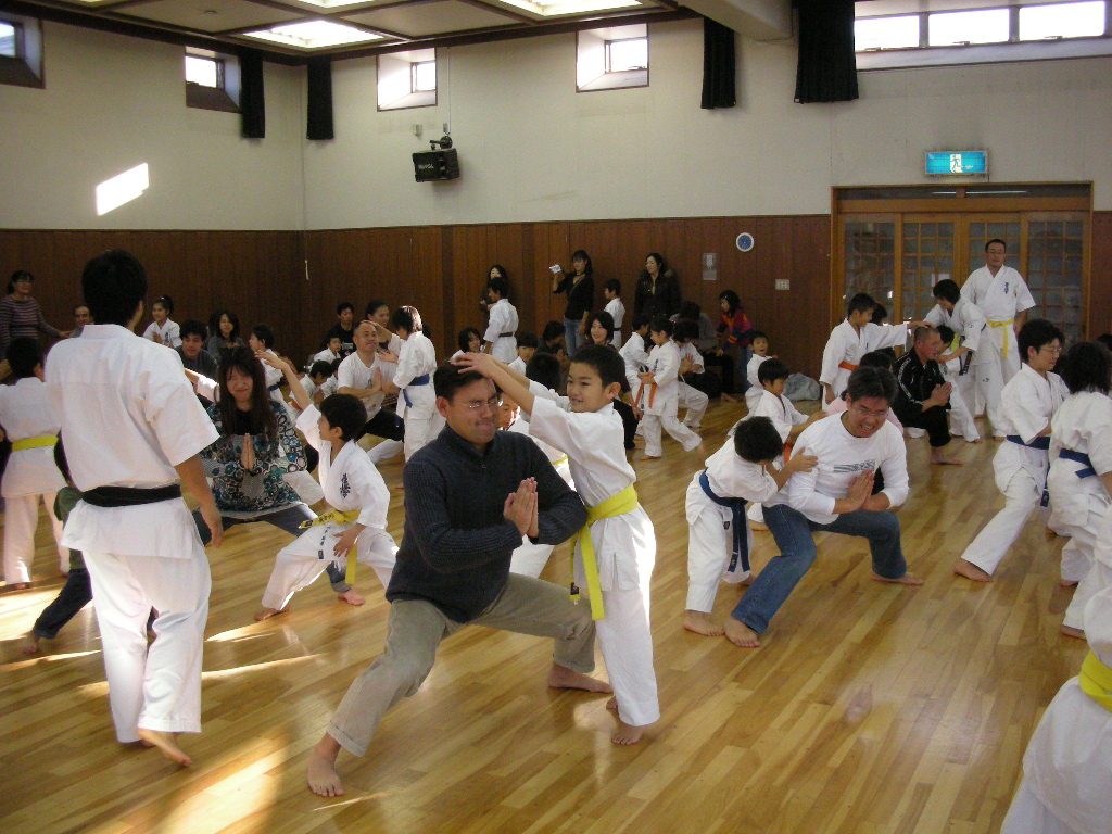 子供たちはお父さん、お母さんに空手を教える誇らしさと照れくささを見せながら、父兄はあえて子供の目線まで降りて謙虚に教わっていたように見えて、微笑ましい稽古になりました。