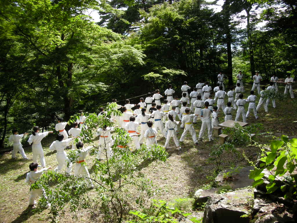 夏とは思えない程涼しい山での早朝稽古は基本稽古の後、班別の稽古。