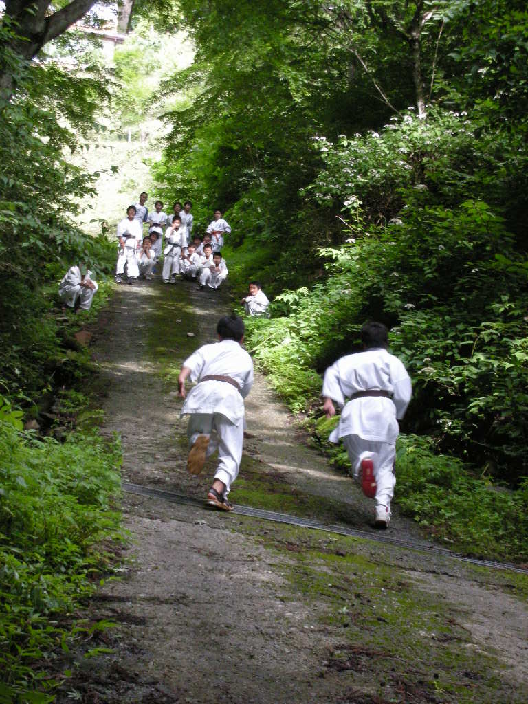 車が登るのにもエンジンがうなりをあげる程の急坂を多くの班が使い、移動稽古やダッシュなどを元気に行いましたが、相変わらず少年達は元気でした。