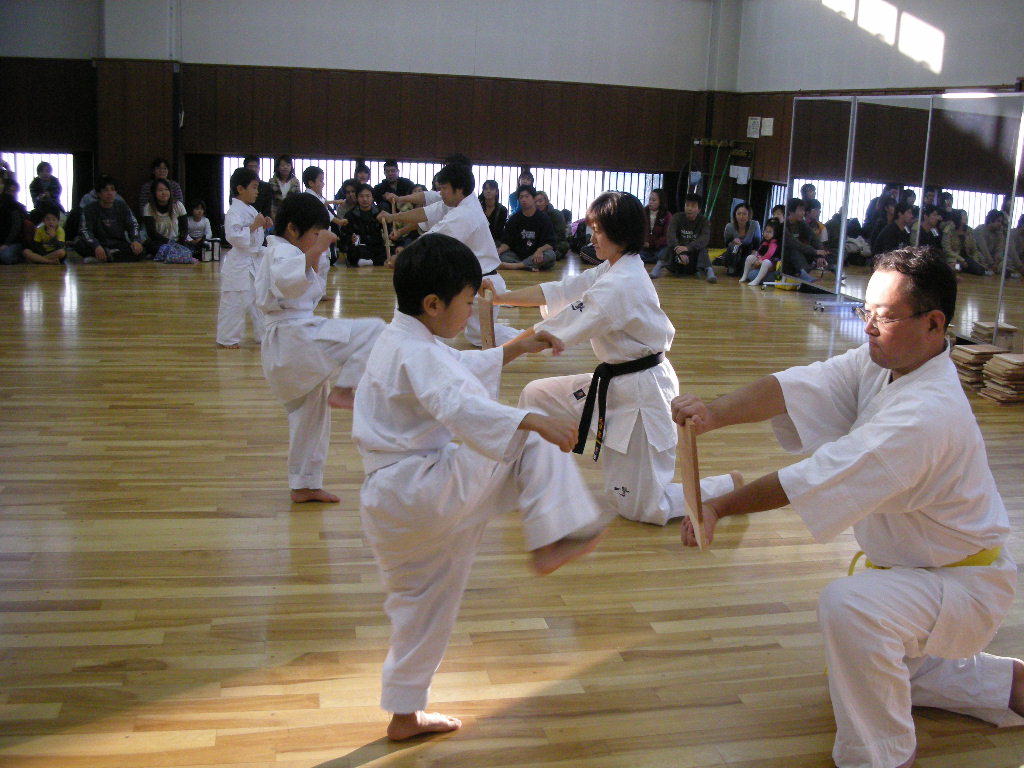子供たちはお父さん、お母さんに空手を教える誇らしさと照れくささを見せながら、父兄はあえて子供の目線まで降りて謙虚に教わっていたように見えて、微笑ましい稽古になりました。