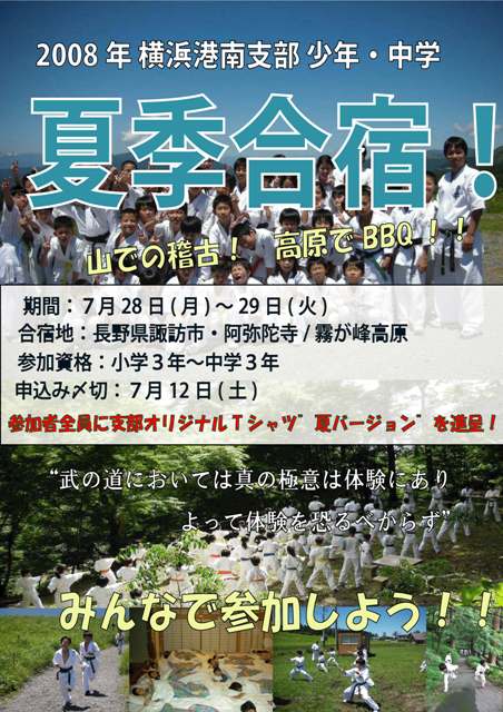 私たちの支部は松井章圭館長の下、横浜市の黄金町/阪東橋・本牧・上大岡・戸塚・東戸塚・泉・金沢など7ヶ所の道場で活動しています。このブログでは、道場の活動・出来事を中心に、グルメ・親バカ日記などの気まま事も書いて行きます。気楽にお付き合い下さい。