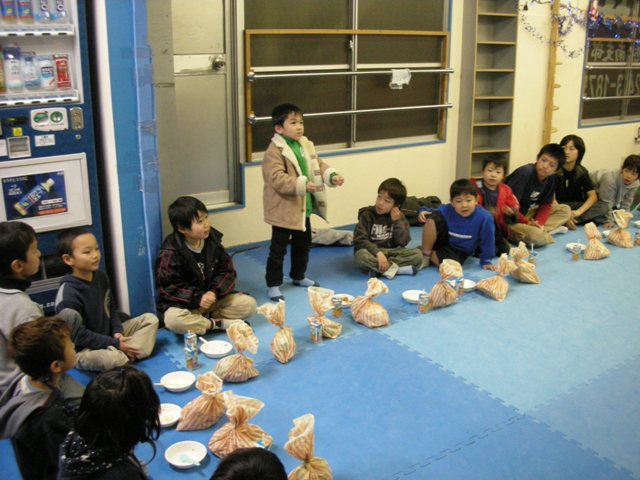 道場は普段と違いクリスマスの飾り付けがされ、クリスマスソングのBGMが流れます。