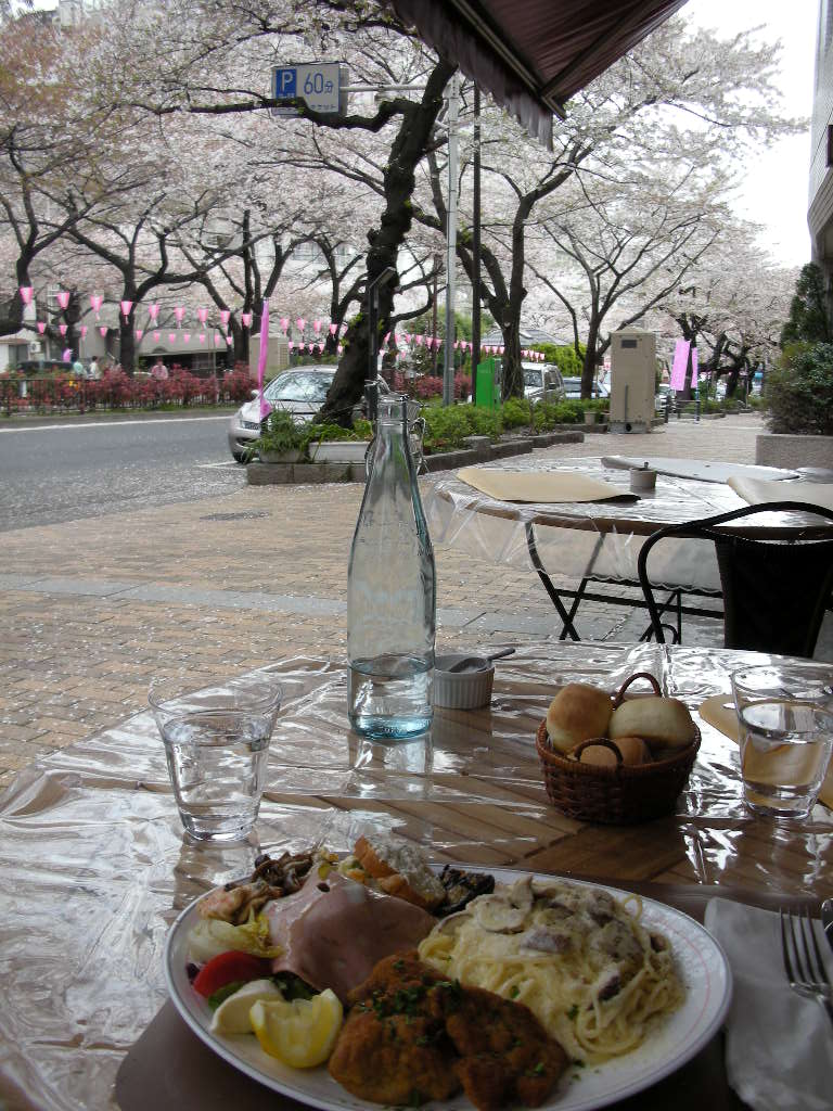 桜を観ながらオープンテラスで本格派のイタリアンレストランでランチ。