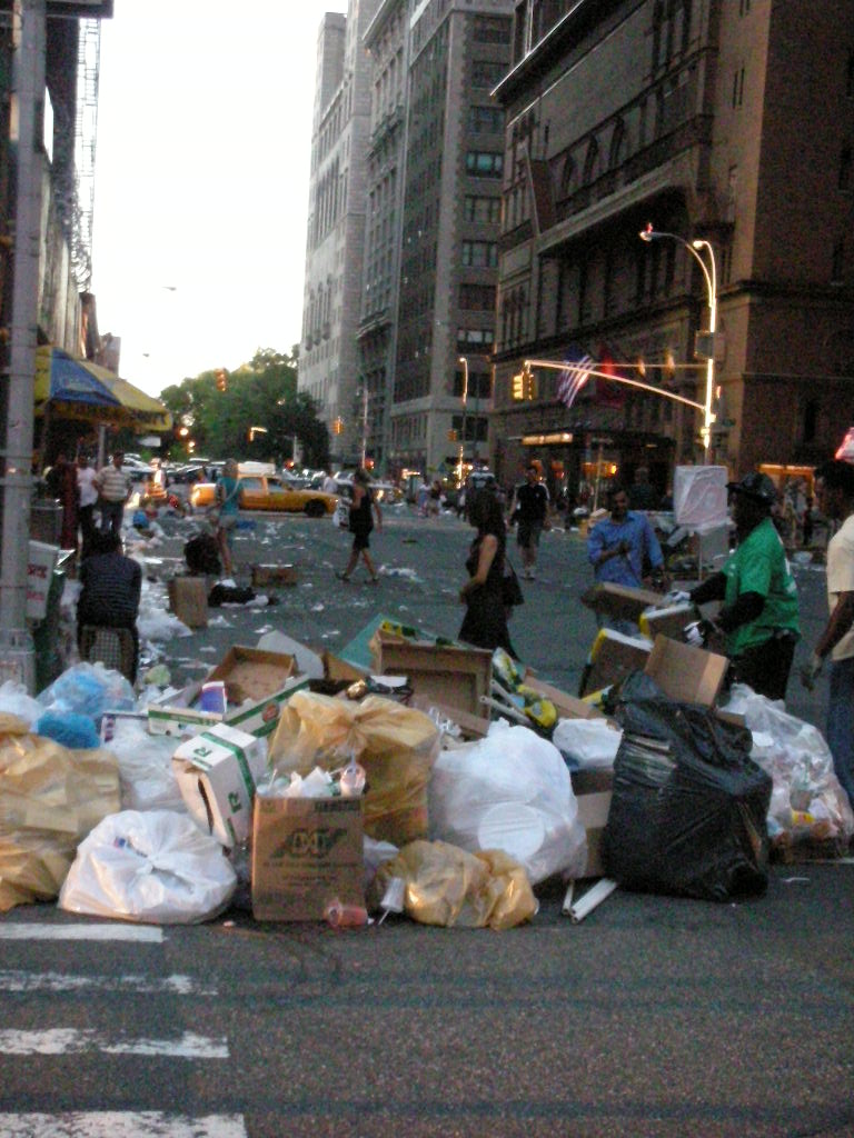 大通りの300メートルに渡りゴミがぐちゃぐちゃに散らかっています。
