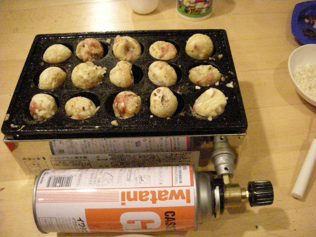 たこ焼きを焼きながら一杯やろうかと思いましたが、たこ焼きに付っきりで飲みがおろそかになってしまいます。